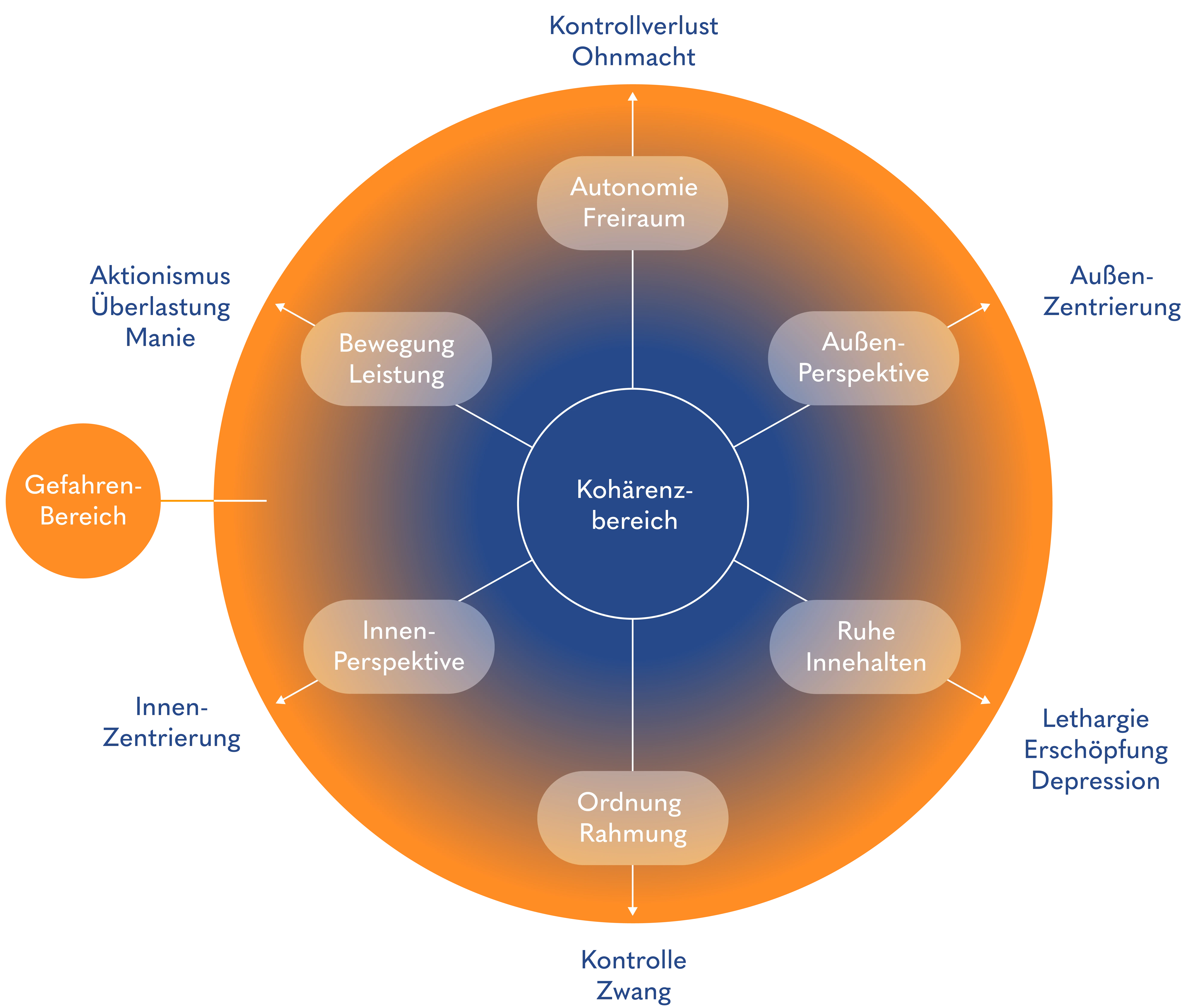 Die Grafik (unten) ist ein Versuch, Ambivalenzen im Umgang mit KI sichtbar zu machen. Sie basiert bewusst auf demselben Modell wie die, der Seite ICH und ist eng mit ihr verwandt, denn psychologisch betrachtet eröffnet KI kein neues System, sondern erweitert den bestehenden inneren Dialograum im hypno-systemischen Sinne.