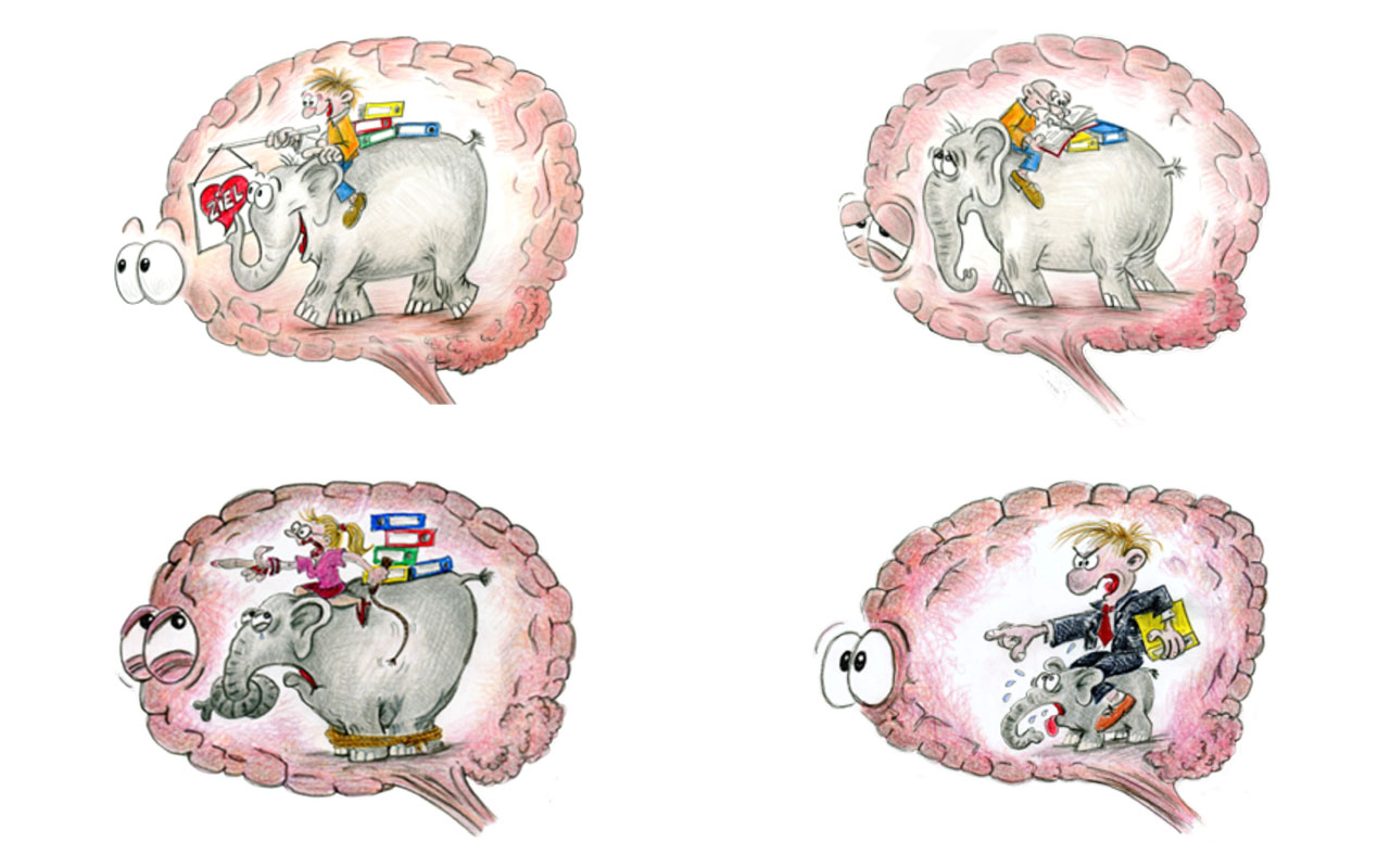 Wenn der Reiter den Elefanten nicht versteht, kann er ihn nicht führen. Und wenn der Elefant erschöpft ist, kann der Reiter so viel lenken, wie er will – es bewegt sich trotzdem nichts.